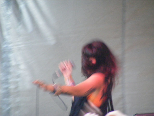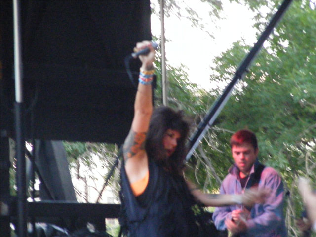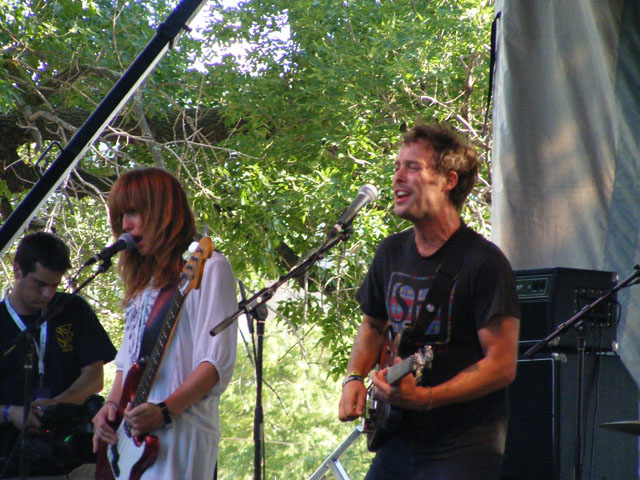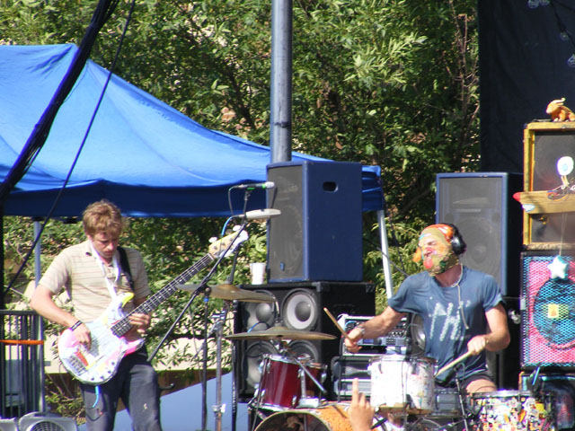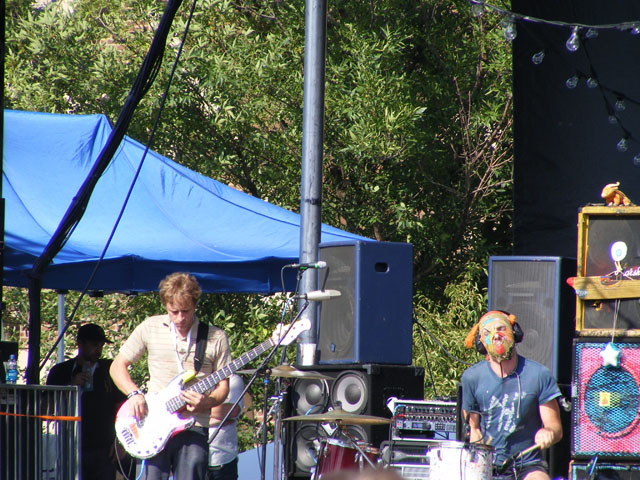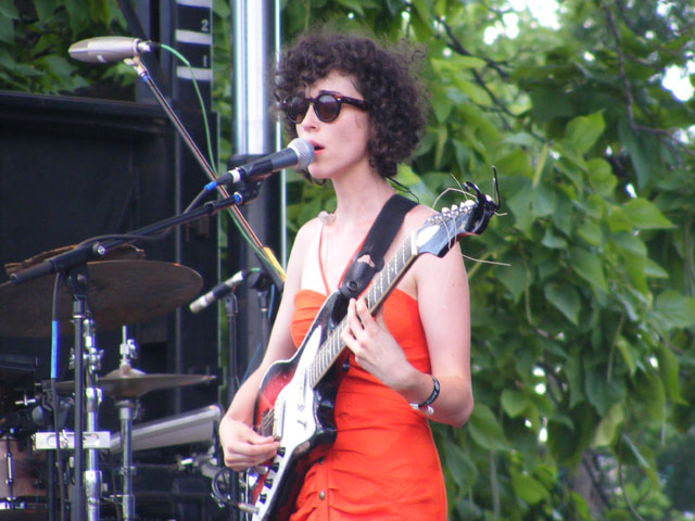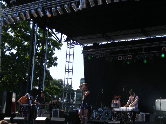 For those wondering about the comedy stage, I didn’t have a chance to go over and see some stand-up, but from what I hear things were anywhere from halfway decent (Hannibal Buress) to a little testy (Wyatt Cenac) through extremely terrible (Michael Showalter) and ending on a high note (Eugene Mirman). If you saw some comedy and liked/disliked a set, please let me know in the comments. But on Friday there were no artist conflicts, which meant watching every act from start to finish, or finding distraction elsewhere. A couple of the best not only on Friday but of the entire weekend were Liars and Robyn. They played right in a row and couldn’t have been more different as far as content went. Liars were smart in that they completely tailored their set to an outdoor festival environment. They have more than their fair share of slow or quiet songs, but chose instead to emphasize the louder, wackier aspects of their catalogue. It all played perfectly into frontman Angus Andrew’s hands, who danced up a storm, jumped into the crowd, shoved the microphone down his throat, and a host of other crazy things that thrilled as much as the songs. Robyn is more your traditional pop star, but unlike a Miley Cyrus or Britney Spears she doesn’t use sheer spectacle or distraction to keep you from paying complete attention to her performance. By playing it straight and actually singing her addictive songs in quality fashion, she’s epitomizing how a pop star should act on stage. She’s also got some killer dance moves to go with that voice, and by approaching things in a fun and energetic fashion, it made for one amazing early evening set.