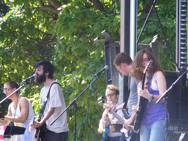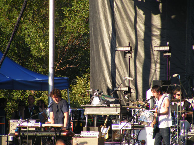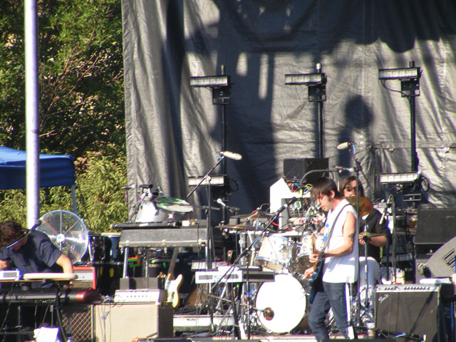 Friday for me didn’t have any bad performances. From Sharon Van Etten through Modest Mouse, everyone was either great or simply alright. The problems started on Saturday, probably with Raekwon. Now at the time Raekwon’s set was supposed to start, I was hanging out a small distance from the stage not paying any attention. When I did pay attention was when it was 10 minutes past the start time and there was no sound coming from Raekwon’s stage. My conclusion was that Raekwon was late arriving or lazy and didn’t want to go on. The truth is that the guy running the laptop with all the song samples on it was having trouble getting it to work properly. So it was a technical issue, but it didn’t help matters in the least. Once Raekwon finally did go on, I was unimpressed enough to walk away after a couple songs. I wandered over to see the Smith Westerns instead, and that turned out to be something of a bust too. Everything went off without a hitch at their stage, but the heat may have gotten to them. They weren’t their normal, spunky selves and their set felt more like amateur hour than an actual professional band. I’ve seen them before and know they can deliver a good show, but sadly this was not one of them. But if you want to talk real disappointment, to the point where I’d call it the worst moments of the entire festival, look no further than Panda Bear’s evening set. I’ve got much love for Noah Lennox on his records, but when he’s by himself live it’s just one slowed down mess of drug-induced ambiance. According to many, there were actual songs played during his set. I couldn’t find any, though my patience wore out long before I started to listen for them. The crowd looked completely disinterested, and I don’t blame them. That’s not the sort of set you want to see outdoors on a hot day at sunset.